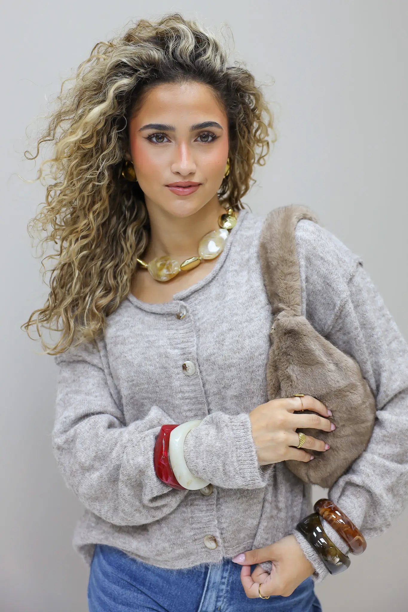 Deze faux fur tas in taupe is zacht, trendy en ruim genoeg voor je essentials. Met 32 x 23 cm is hij perfect voor zowel overdag als ’s avonds. Je vindt hem ook in onze winkel in Middelburg.