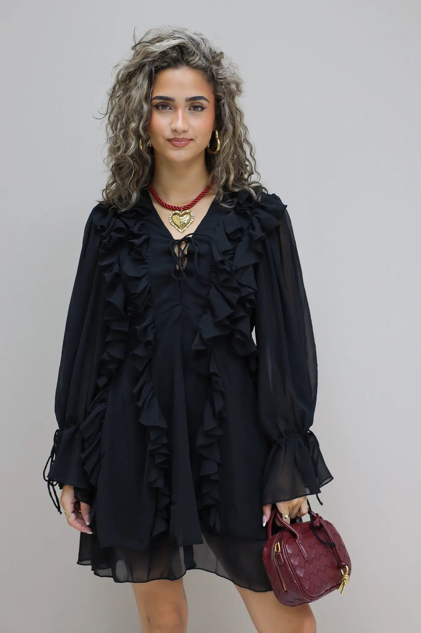 Wacht niet te lang, want dit soort jurken zijn altijd populair. Shop nu jouw jurk ruffles zwart en maak je outfit compleet met bijpassende schoenen en sieraden.