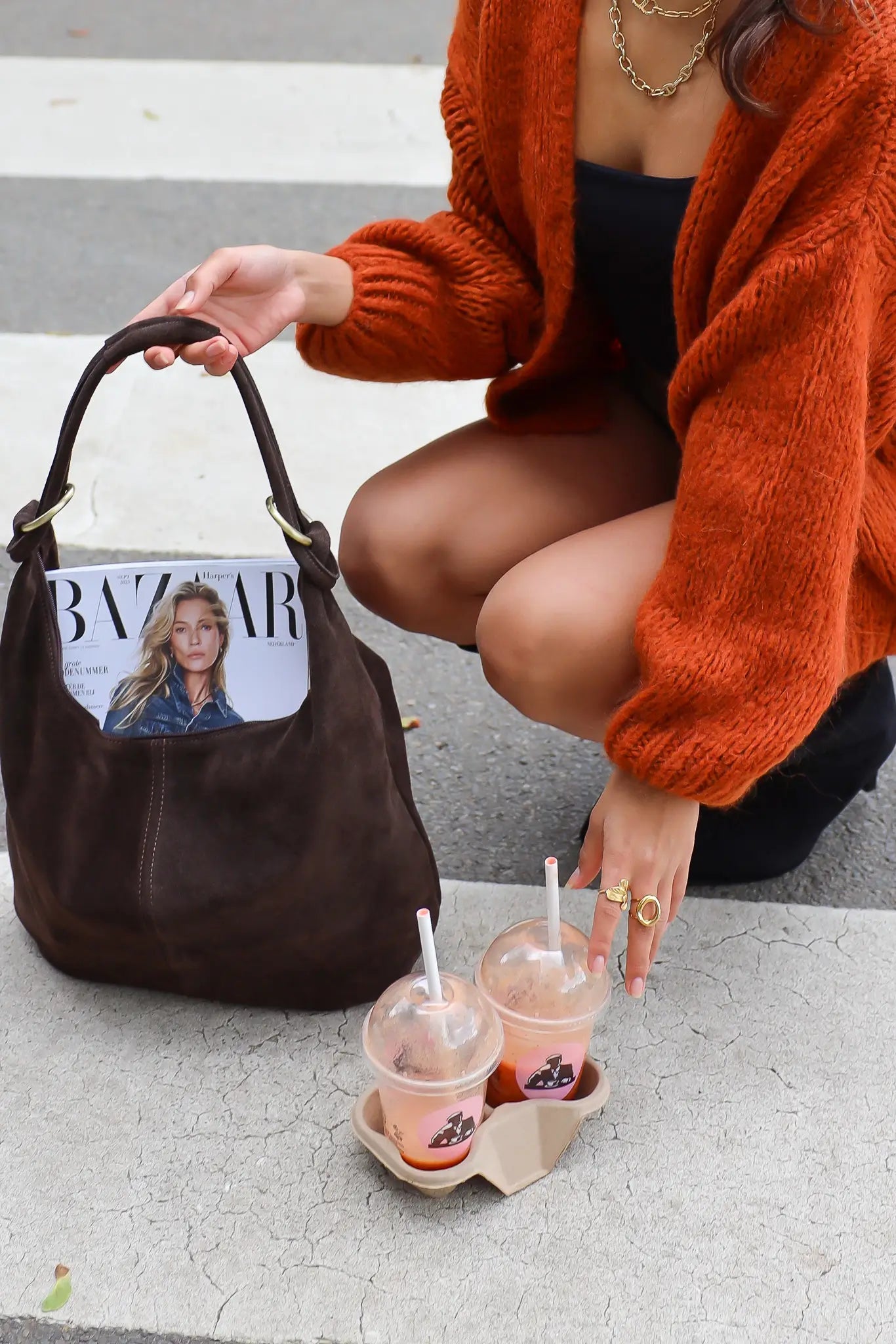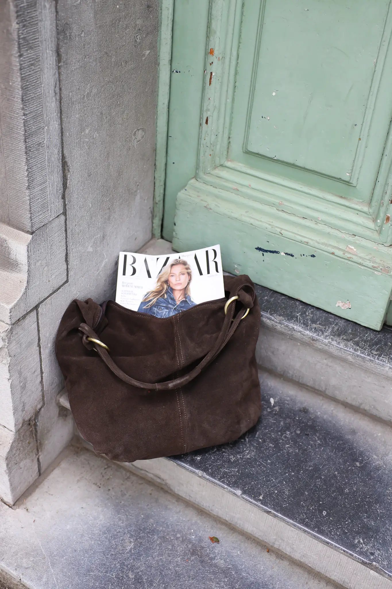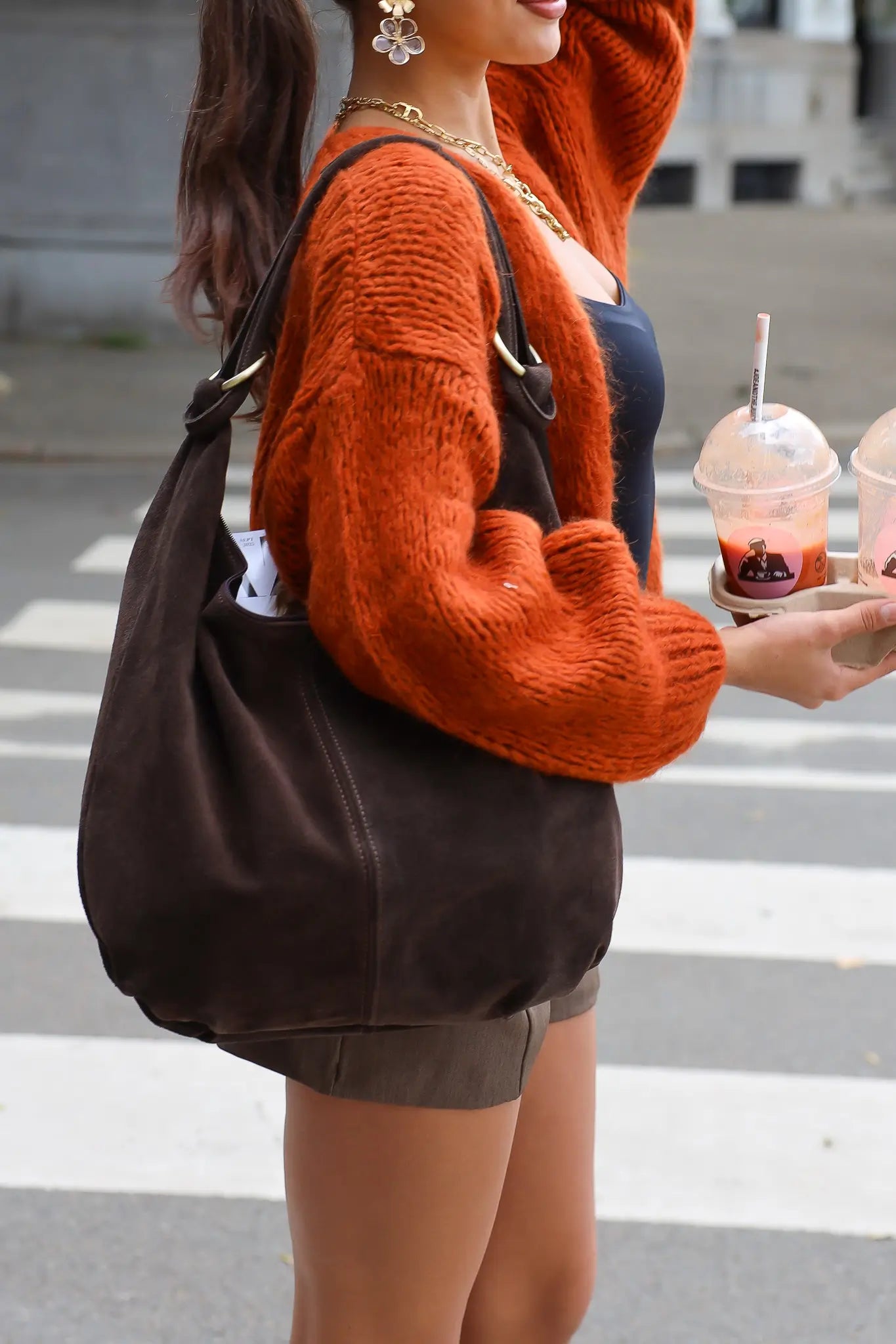 Grote suede tas in bruine kleur