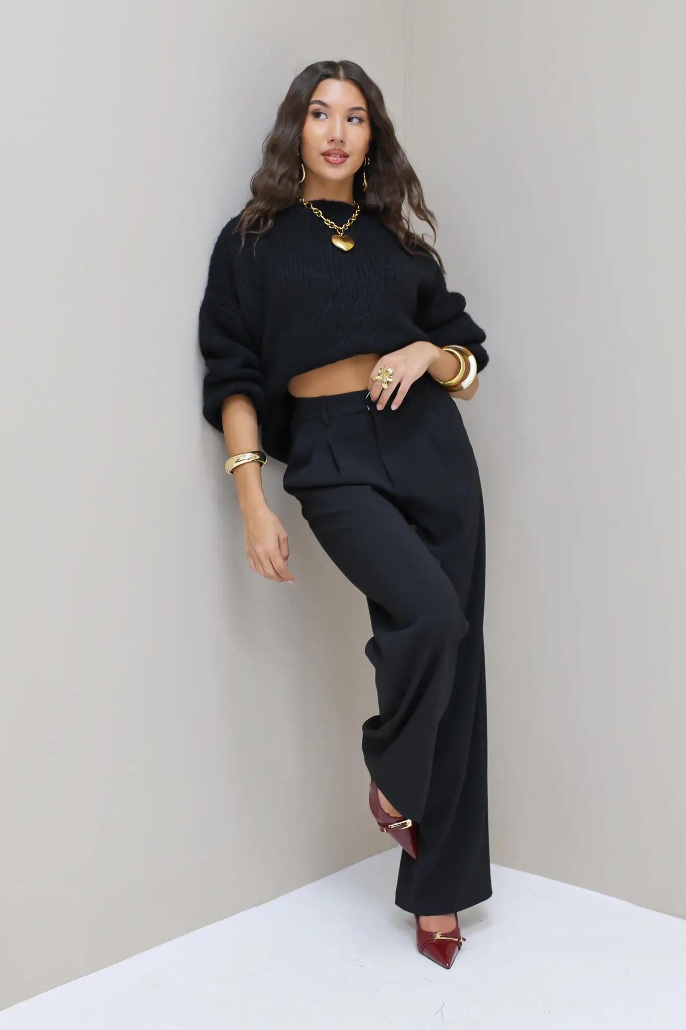 - Product: Pantalon Plooien Wijde Pijpen Zwart