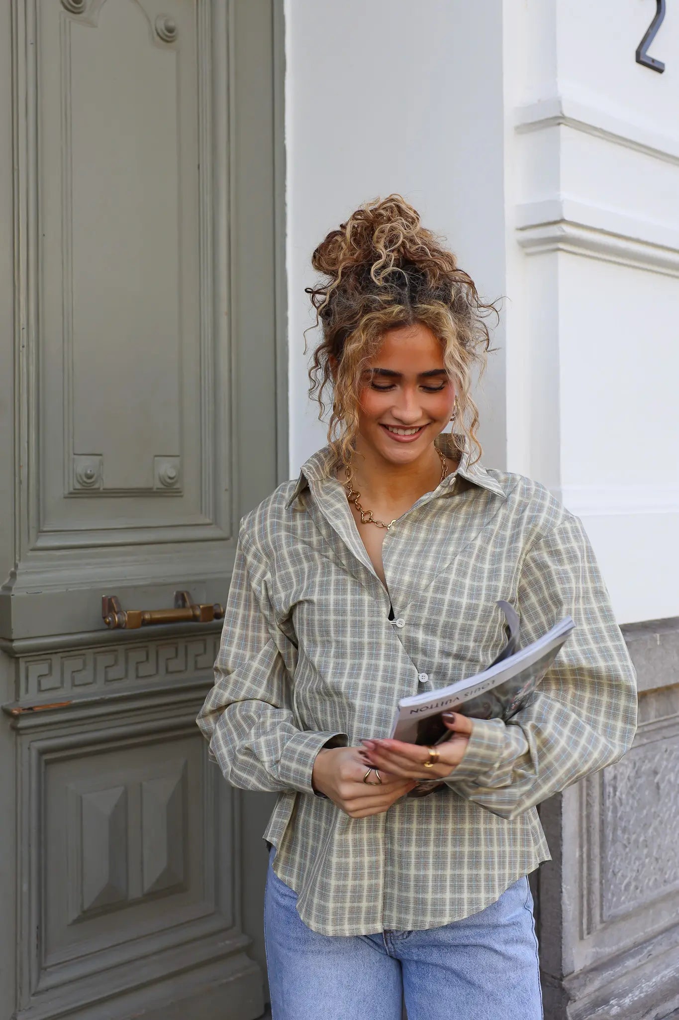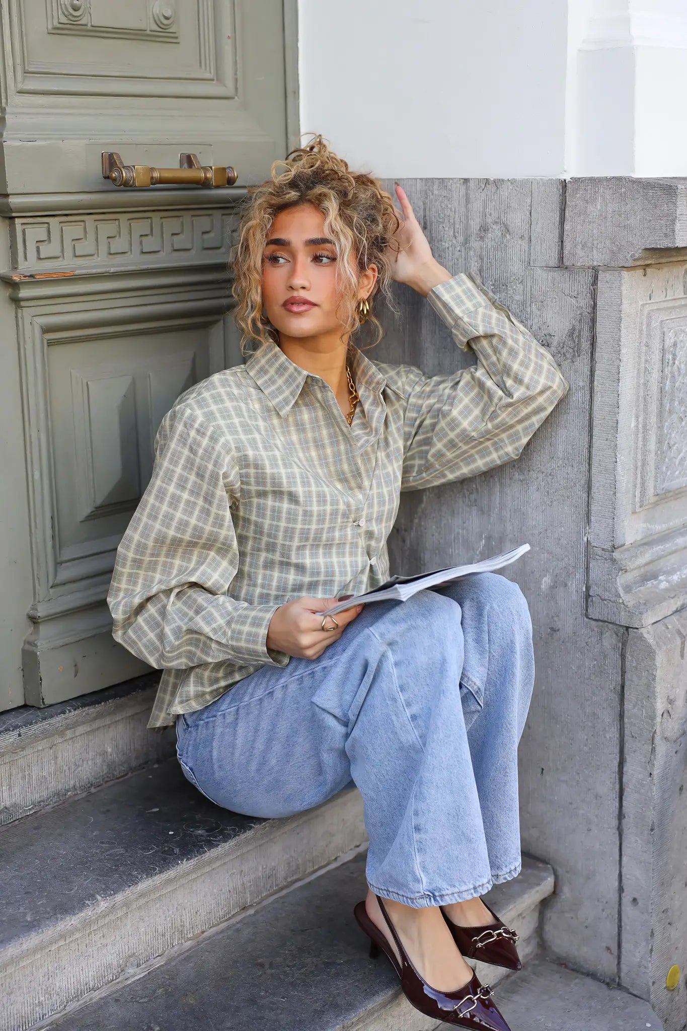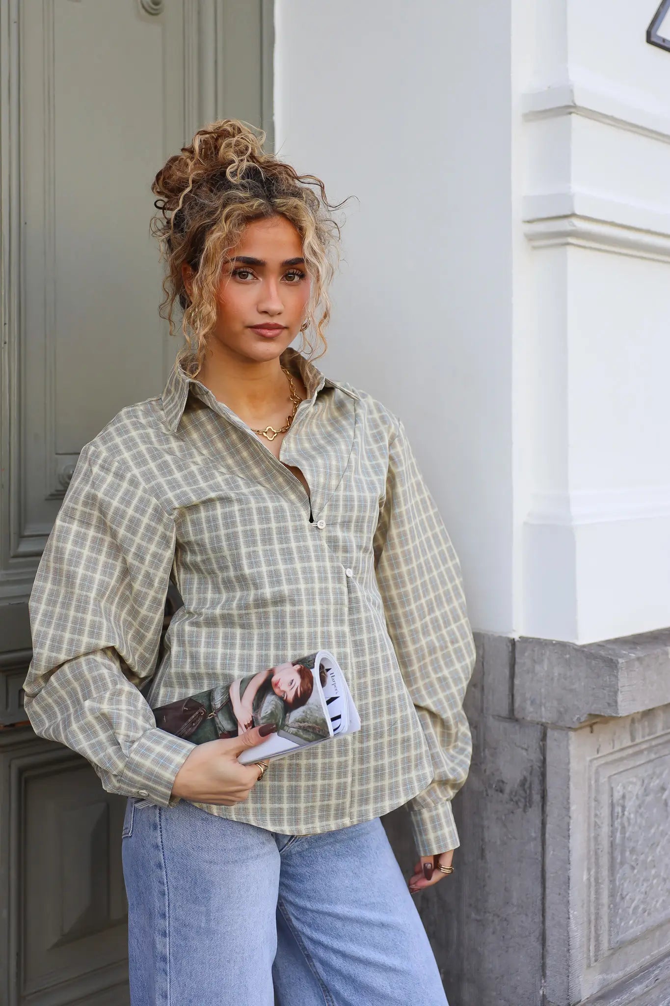 Een ruit blouse blijft een vaste favoriet, maar deze gele asymmetrische ruit blouse laat zien dat het net even anders kan. De asymmetrische lijn aan de voorkant geeft de blouse een eigentijdse uitstraling.