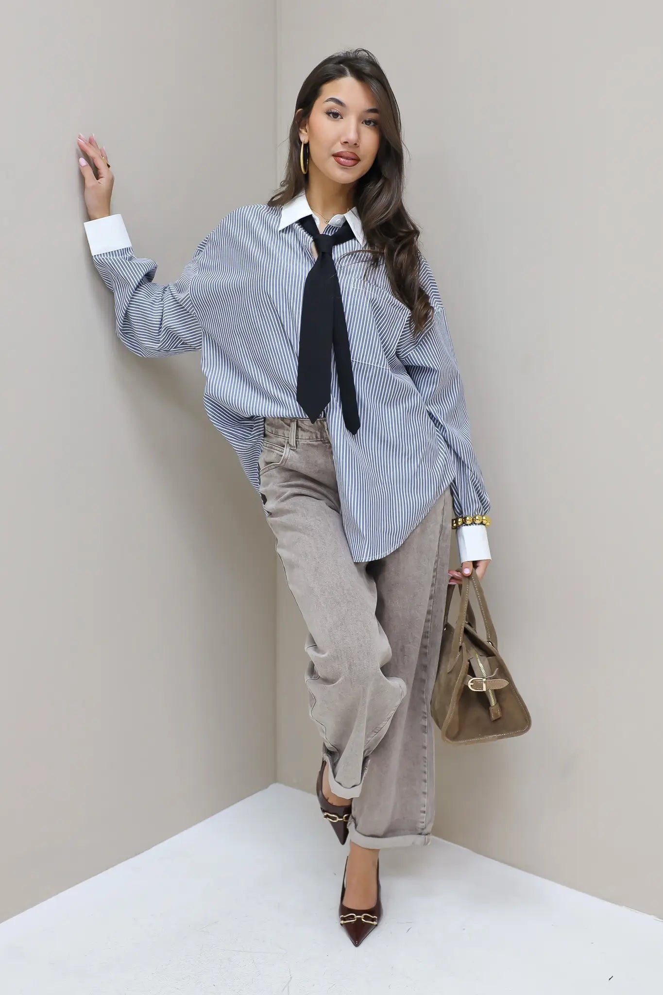 De blouse gestreept stropdas blauw is zo’n item dat meteen iets toevoegt aan je outfit, zonder dat het ingewikkeld wordt. De fijne blauwe strepen zorgen voor een rustige basis, terwijl de losse stropdas het geheel net wat extra geeft. Je draagt ’m met das voor een uitgesproken look, of juist zonder voor een meer cleane uitstraling. Die vrijheid maakt deze blouse heel prettig in gebruik.