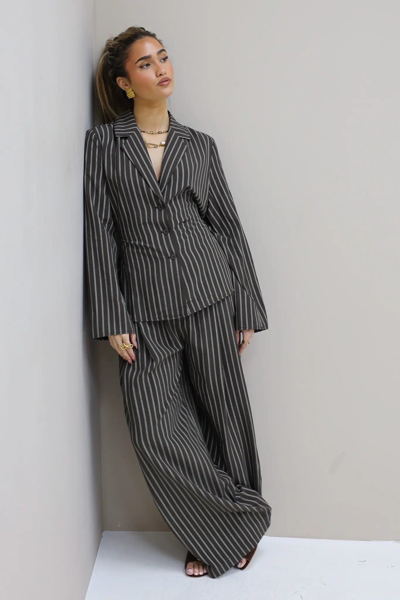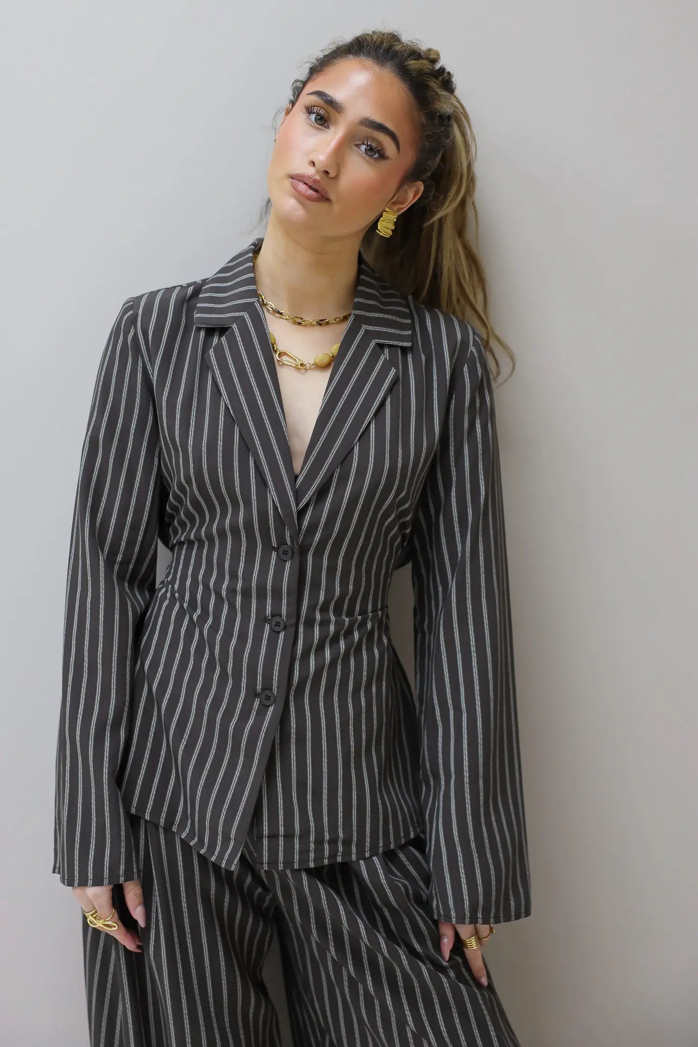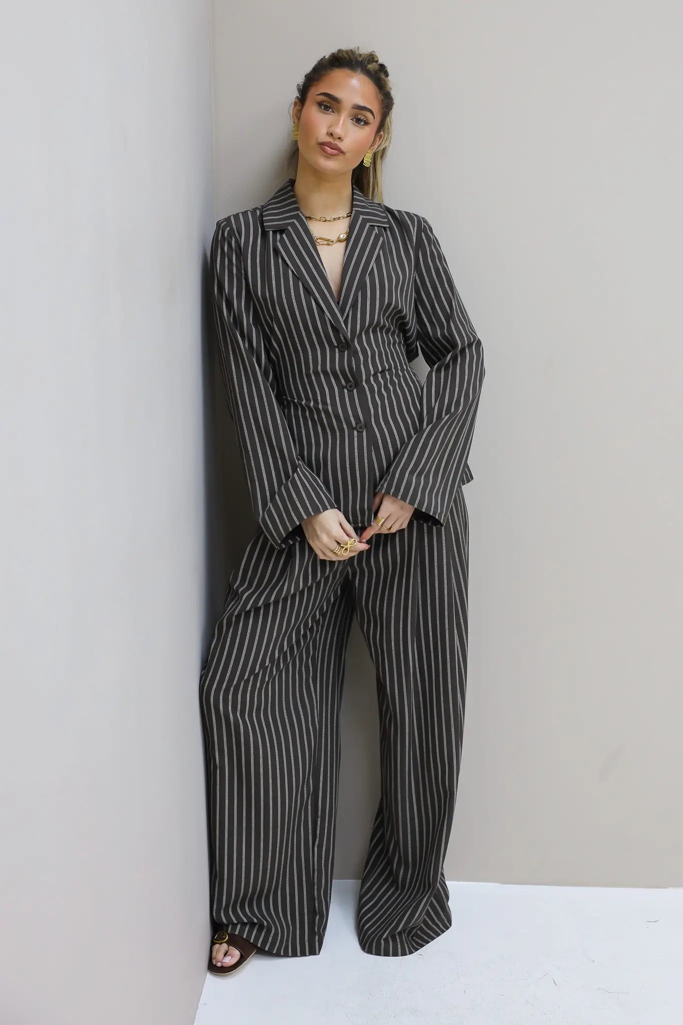 De bruine kleur in combinatie met de fijne streep maakt deze blazer makkelijk te combineren met verschillende tinten. Draag ‘m als set met de pantalon of los met een top of blouse voor een andere look.