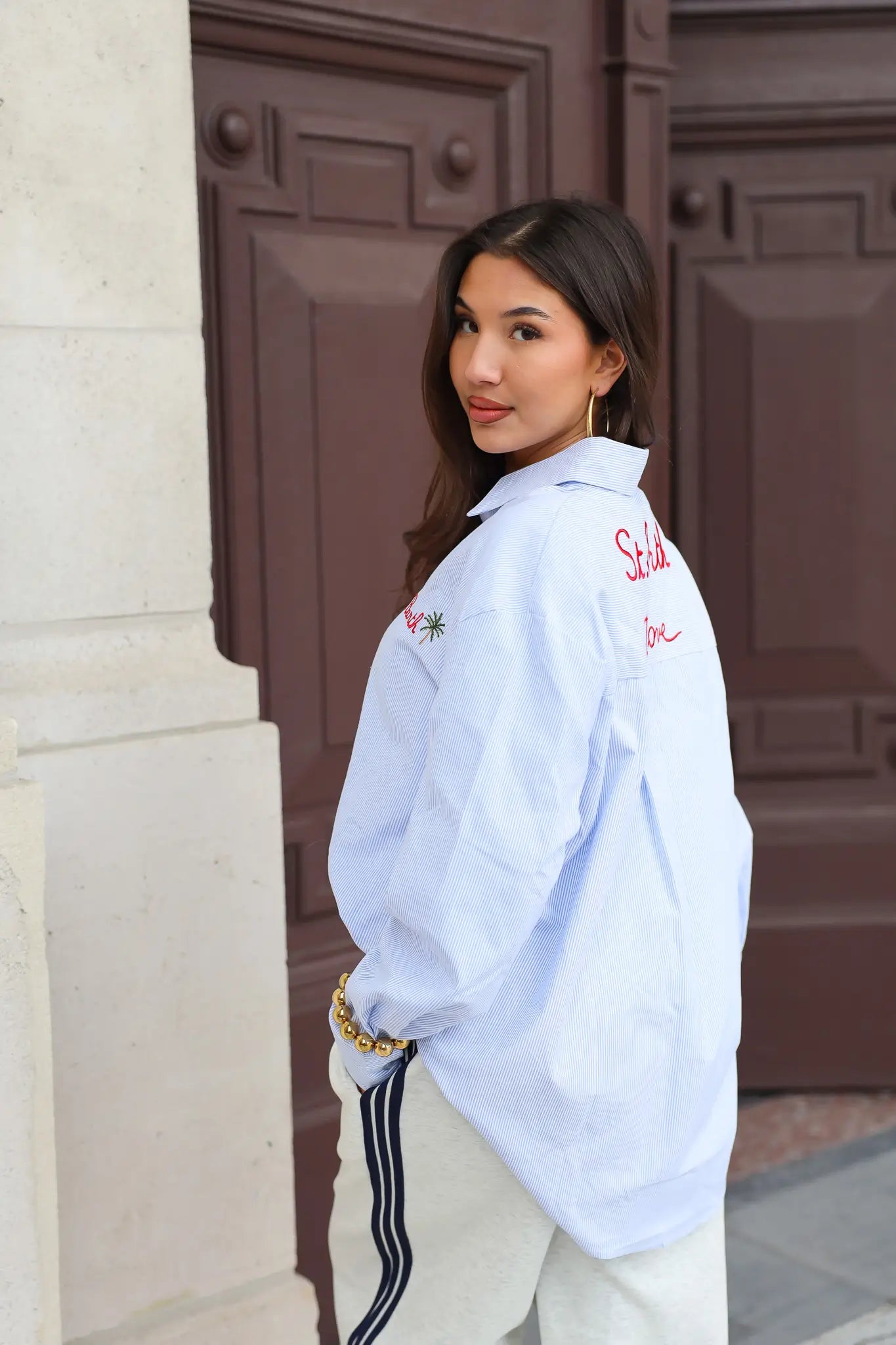 De St. Barth blouse gestreept blauw is zo’n item dat direct opvalt door de combinatie van kleur, patroon en afwerking. De fijne blauwe strepen zorgen voor een rustige basis, terwijl de subtiele borduursels en het label op de rug de blouse een eigen uitstraling geven. Dit is geen standaard blouse, maar een model dat je look meteen iets extra’s geeft zonder ingewikkeld te worden.