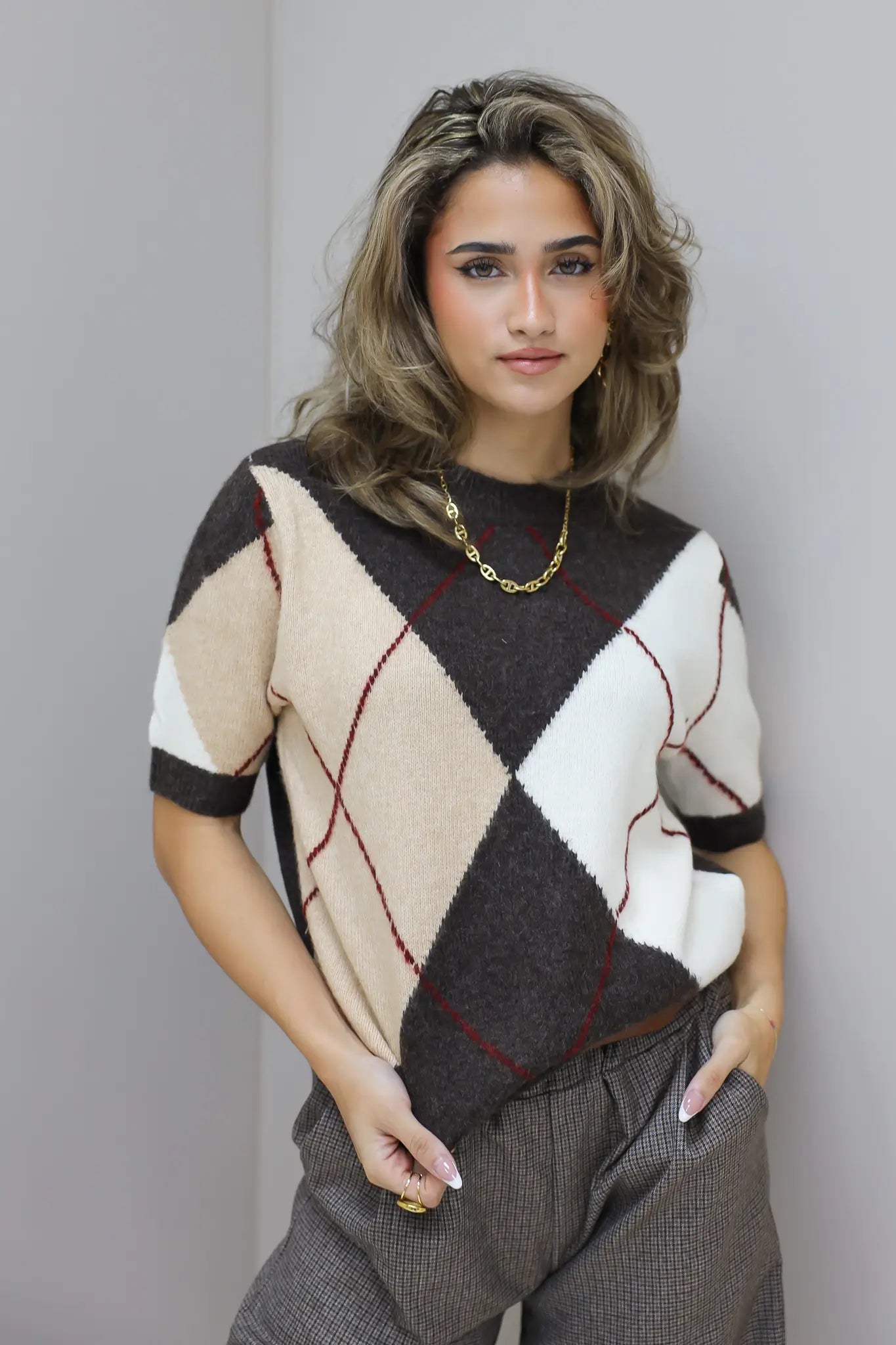 Shop nu de trui korte mouwen ruit bruin bij Ladylike en geef je outfit een nieuwe touch!