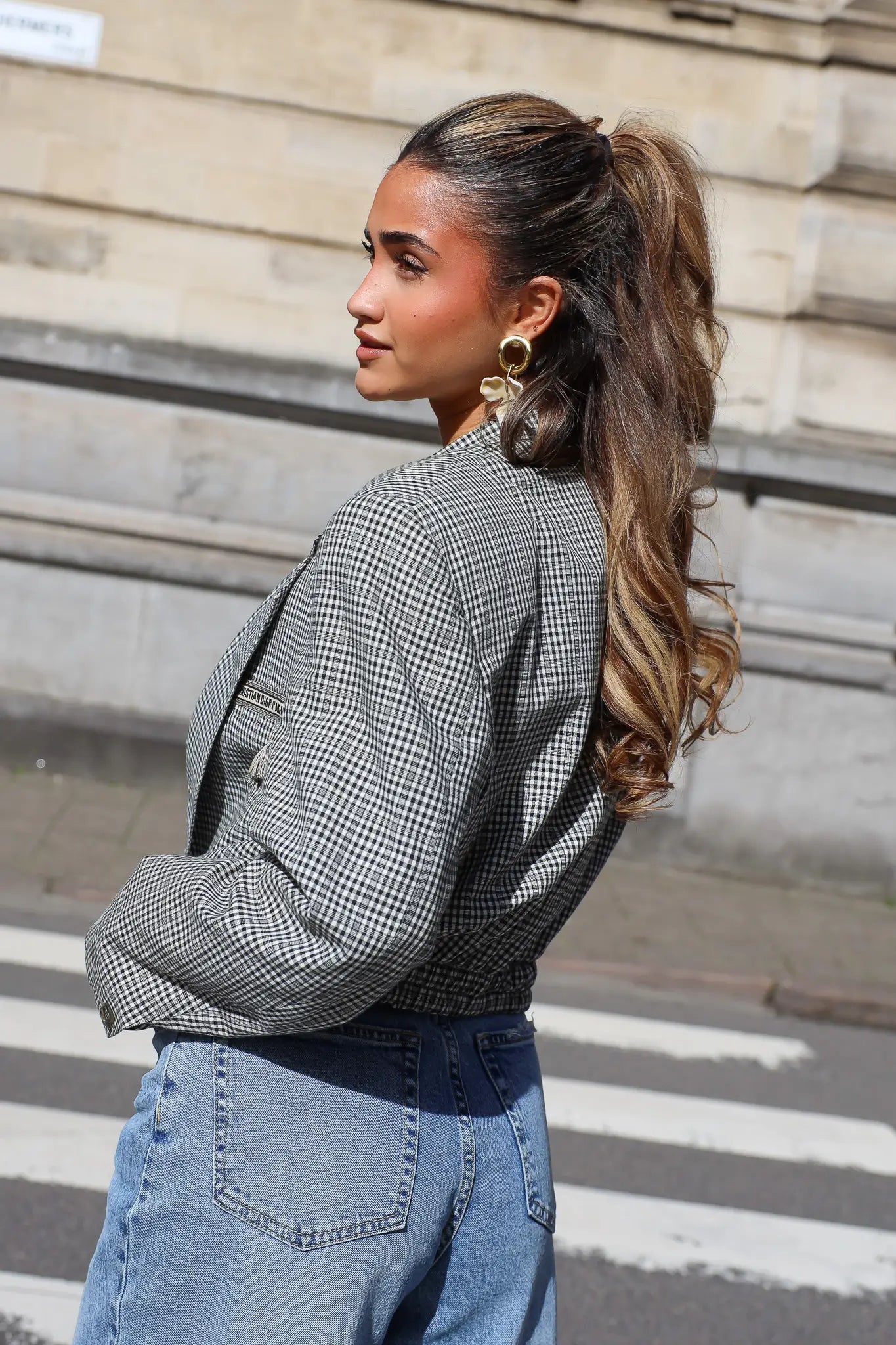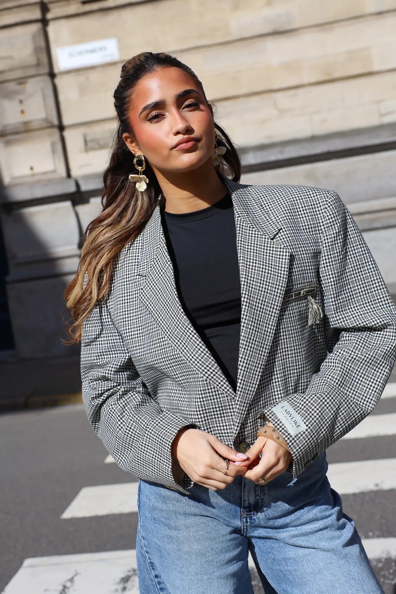 De zwart-witte ruit geeft de blazer een klassieke basis, terwijl de korte lengte juist een eigentijdse look creëert. Hierdoor kun je hem makkelijk dragen met verschillende outfits, van een jeans tot een pantalon of rok.
