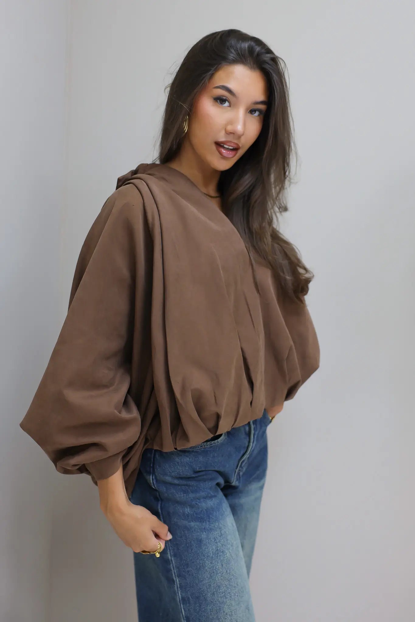 Het ballon jasje bruin is dé must-have voor iedereen die houdt van een losse pasvorm en is de trend van nu. Dit model heeft een ruimvallend design en ballonmouwen die net dat beetje extra geven. Gemaakt van een soepele stof die prettig draagt en gemakkelijk te combineren is met allerlei outfits. Dit jasje is de perfecte keuze.