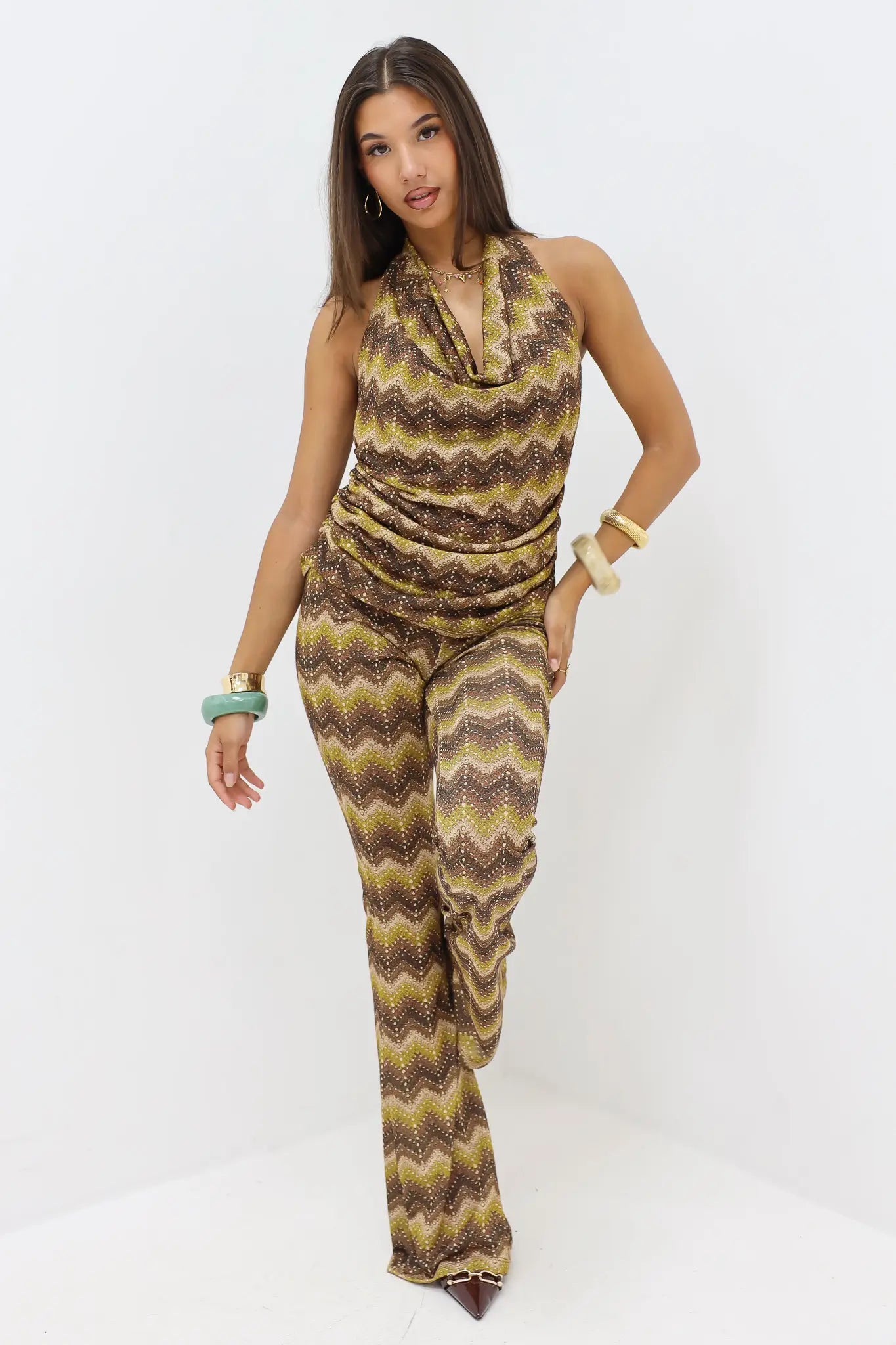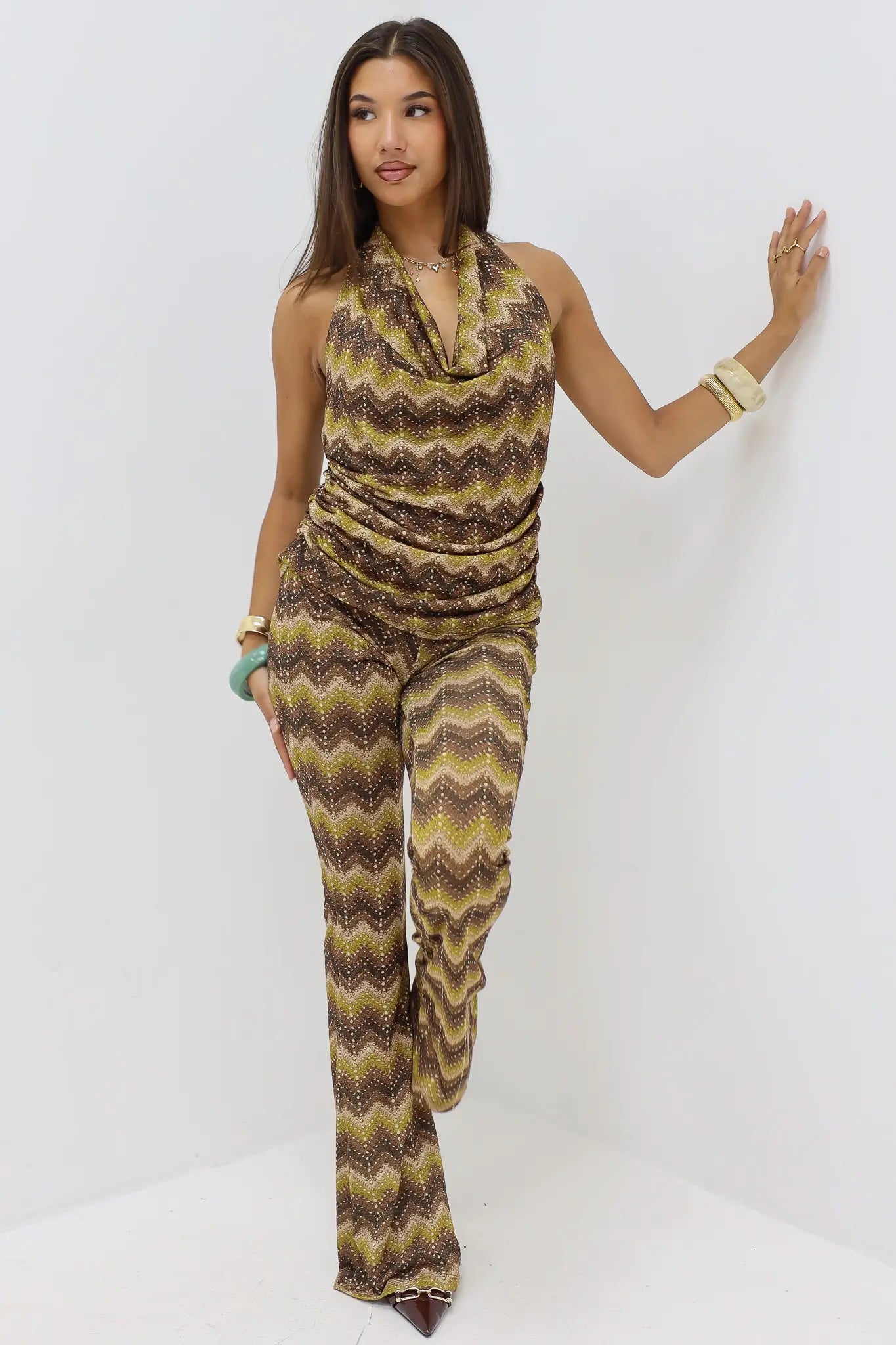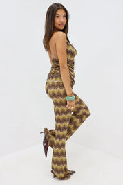Flared Broek Zig Zag Print Anijs