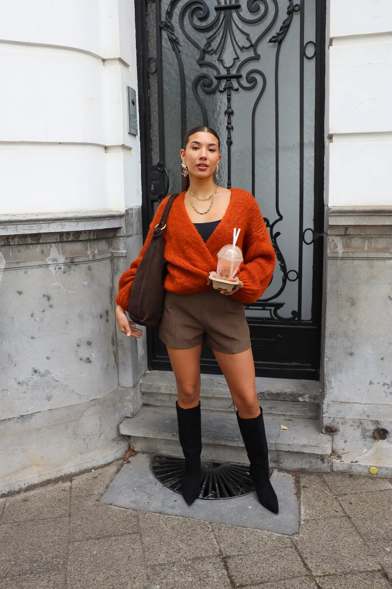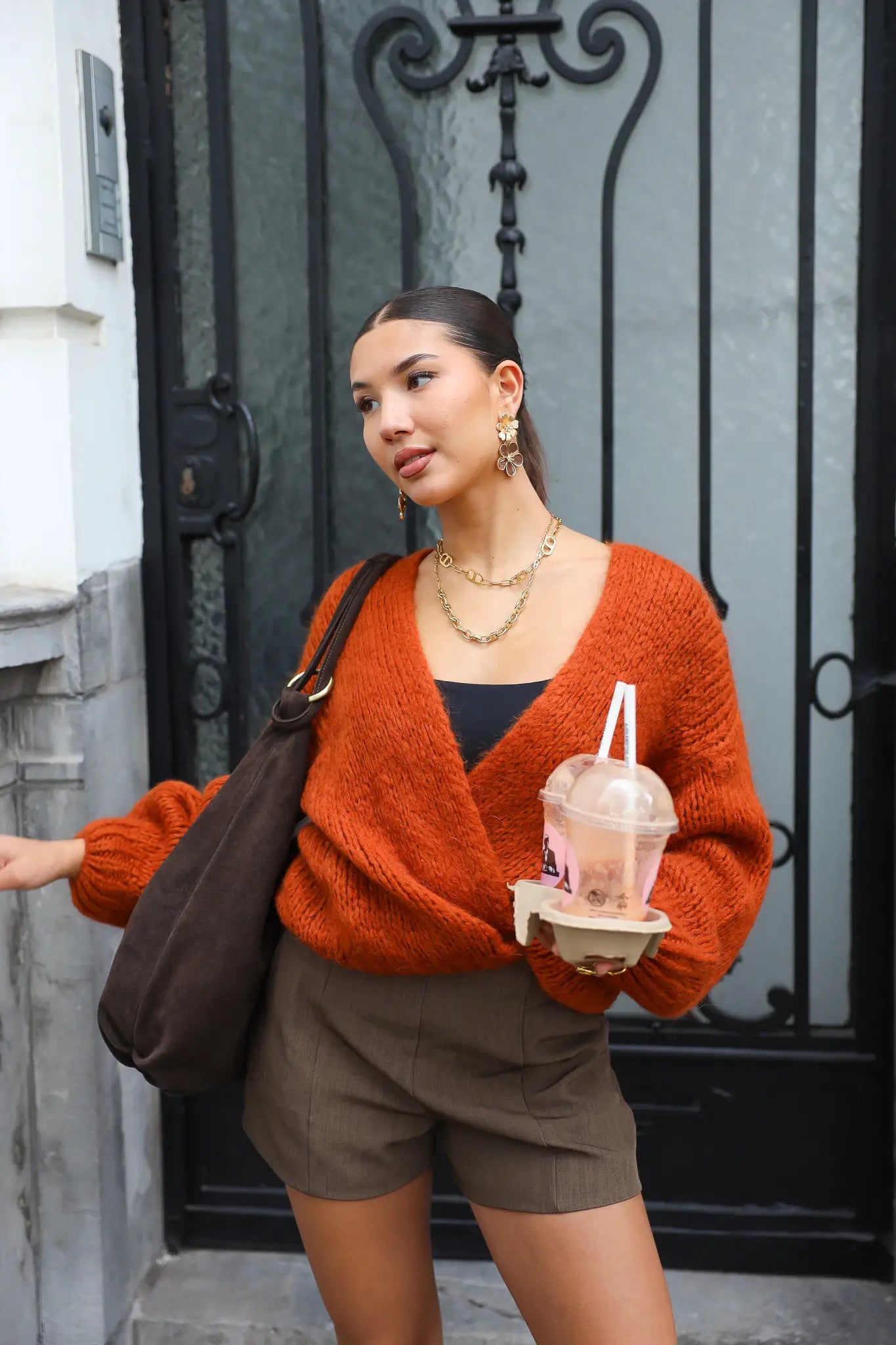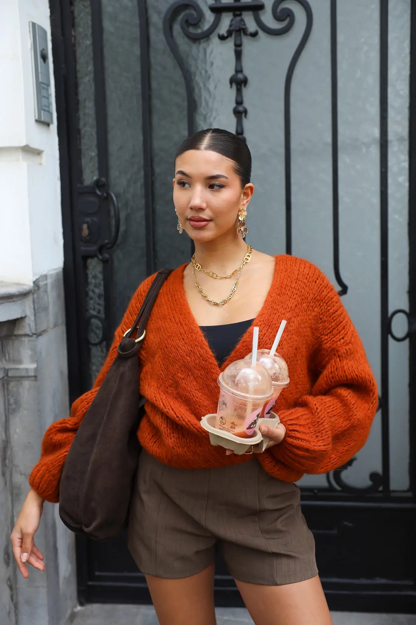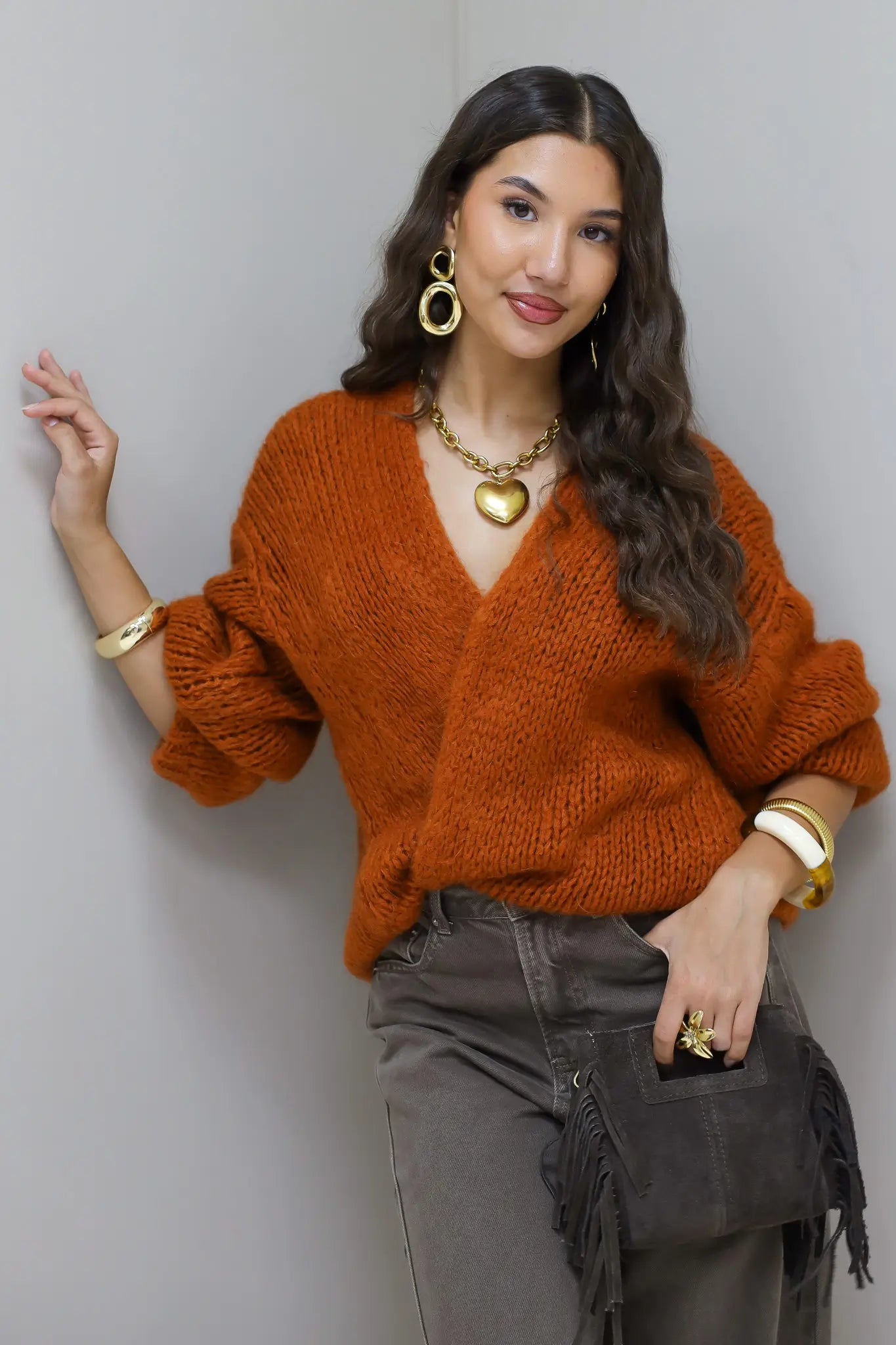 Op zoek naar een vest dat direct iets extra’s toevoegt aan je outfit? Dit Roest Bruine vest is een echte must-have. Met zijn diepe kleur en grofgebreide structuur is het ideaal voor frisse dagen en avonden. Je vindt hem online én in onze winkel in Middelburg, zodat je hem zelf kunt voelen en passen.