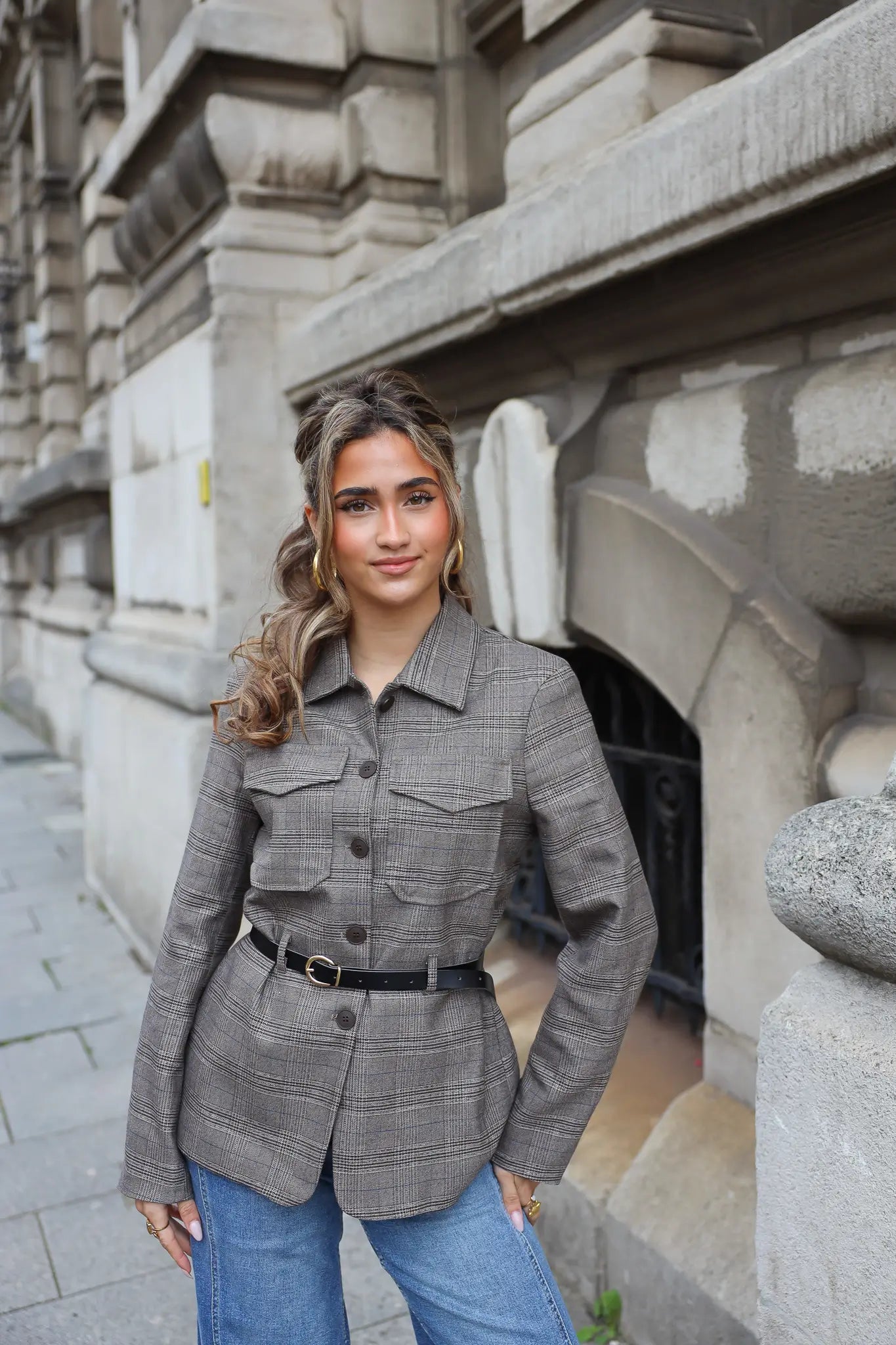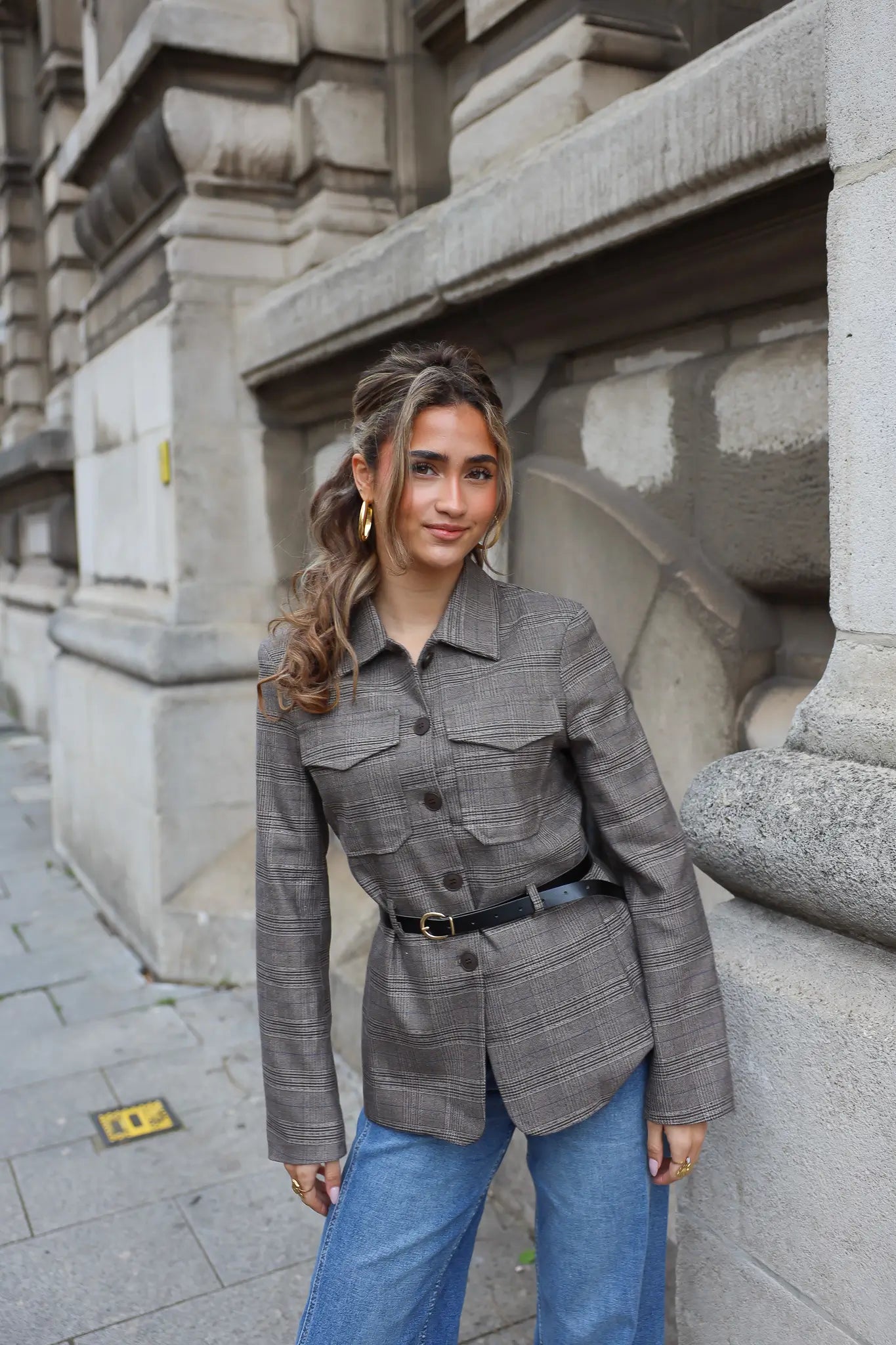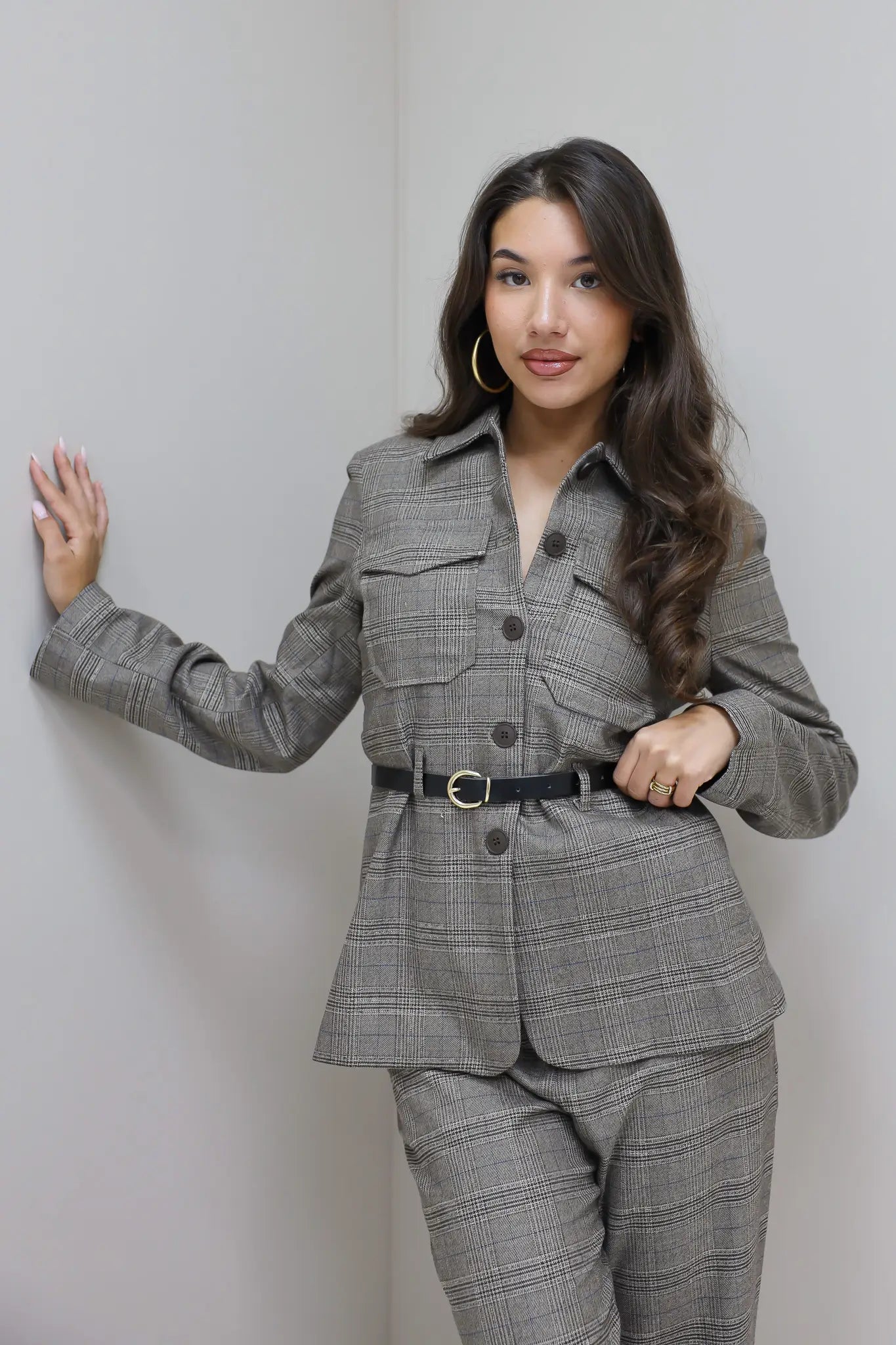 Wil je wat extra’s toevoegen? Combineer ‘m met gouden sieraden, een leren tas of een paar statement oorbellen. Zo geef je deze geruite blazer dames steeds een andere uitstraling – van casual tot netjes.