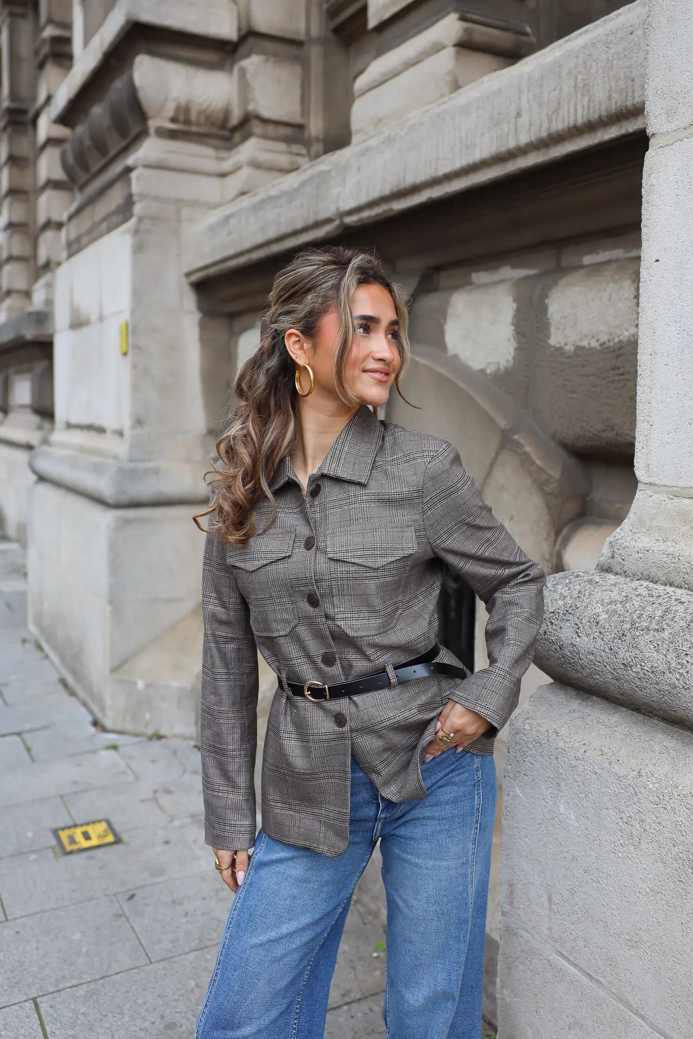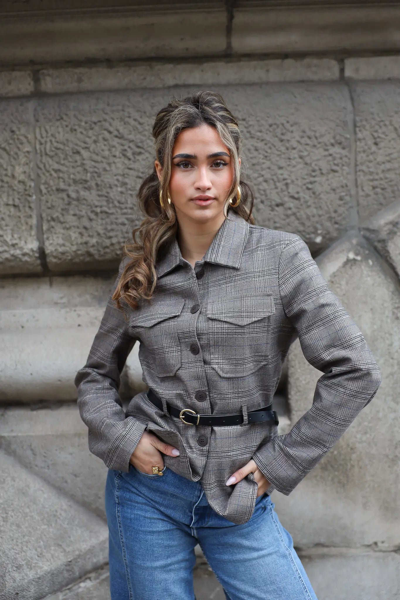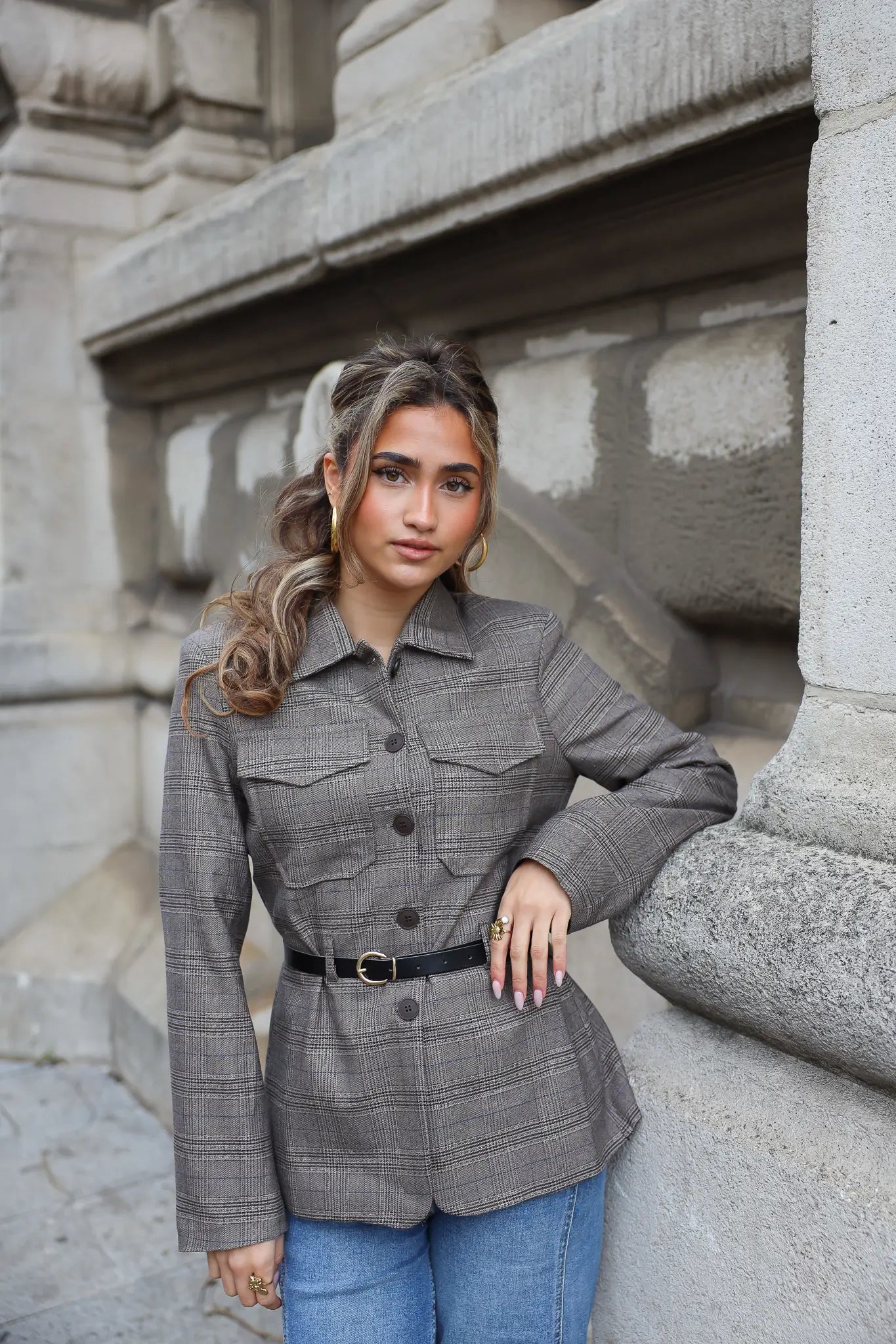 Wil je wat extra’s toevoegen? Combineer ‘m met gouden sieraden, een leren tas of een paar statement oorbellen. Zo geef je deze geruite blazer dames steeds een andere uitstraling – van casual tot netjes.