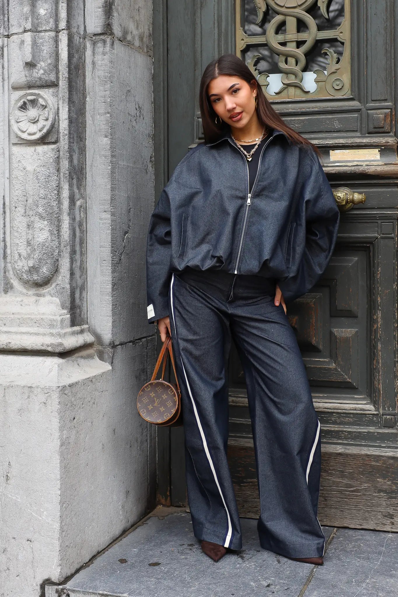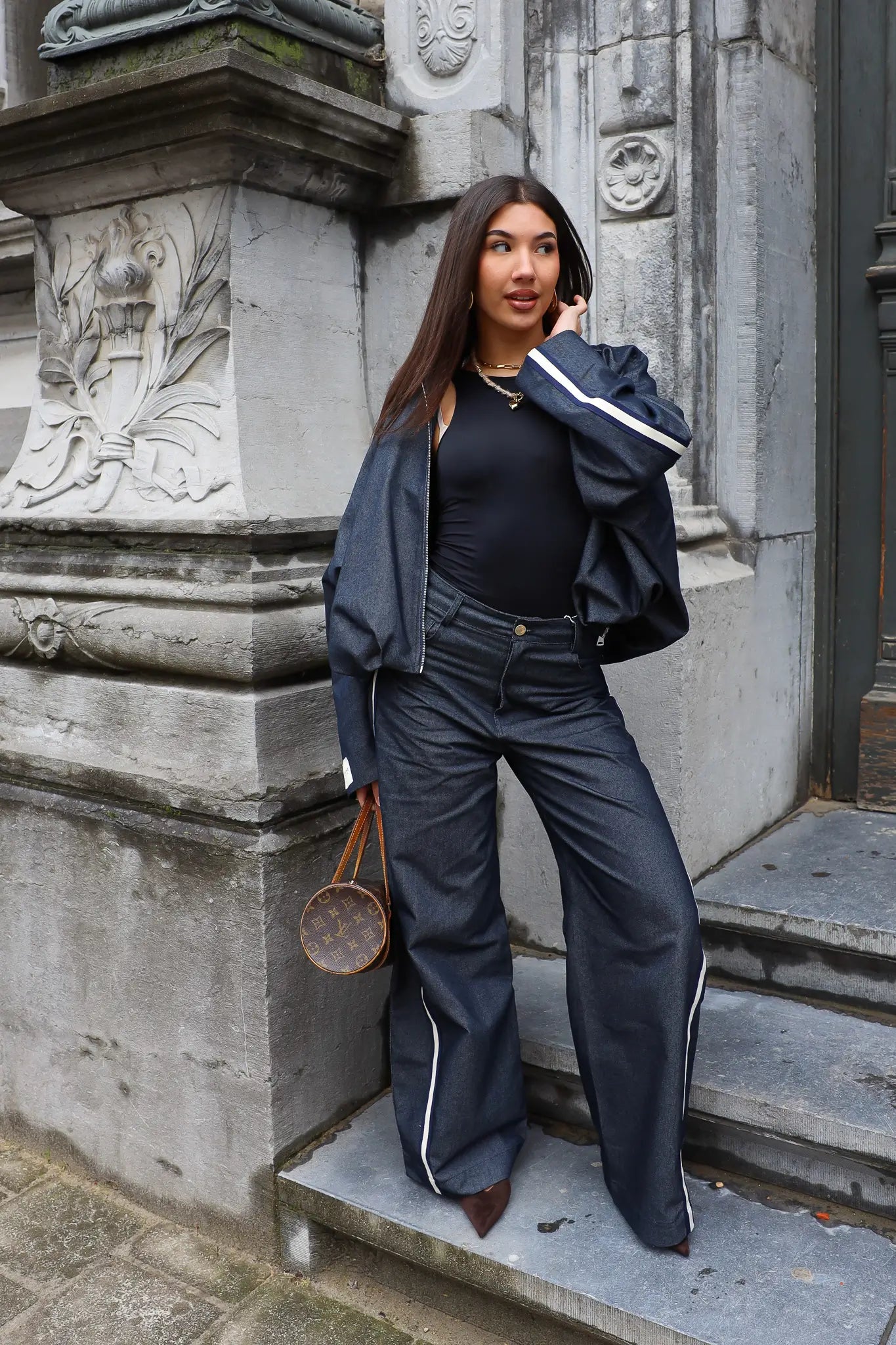 Jeans wide fit streep atelier series blauw die je set compleet maakt