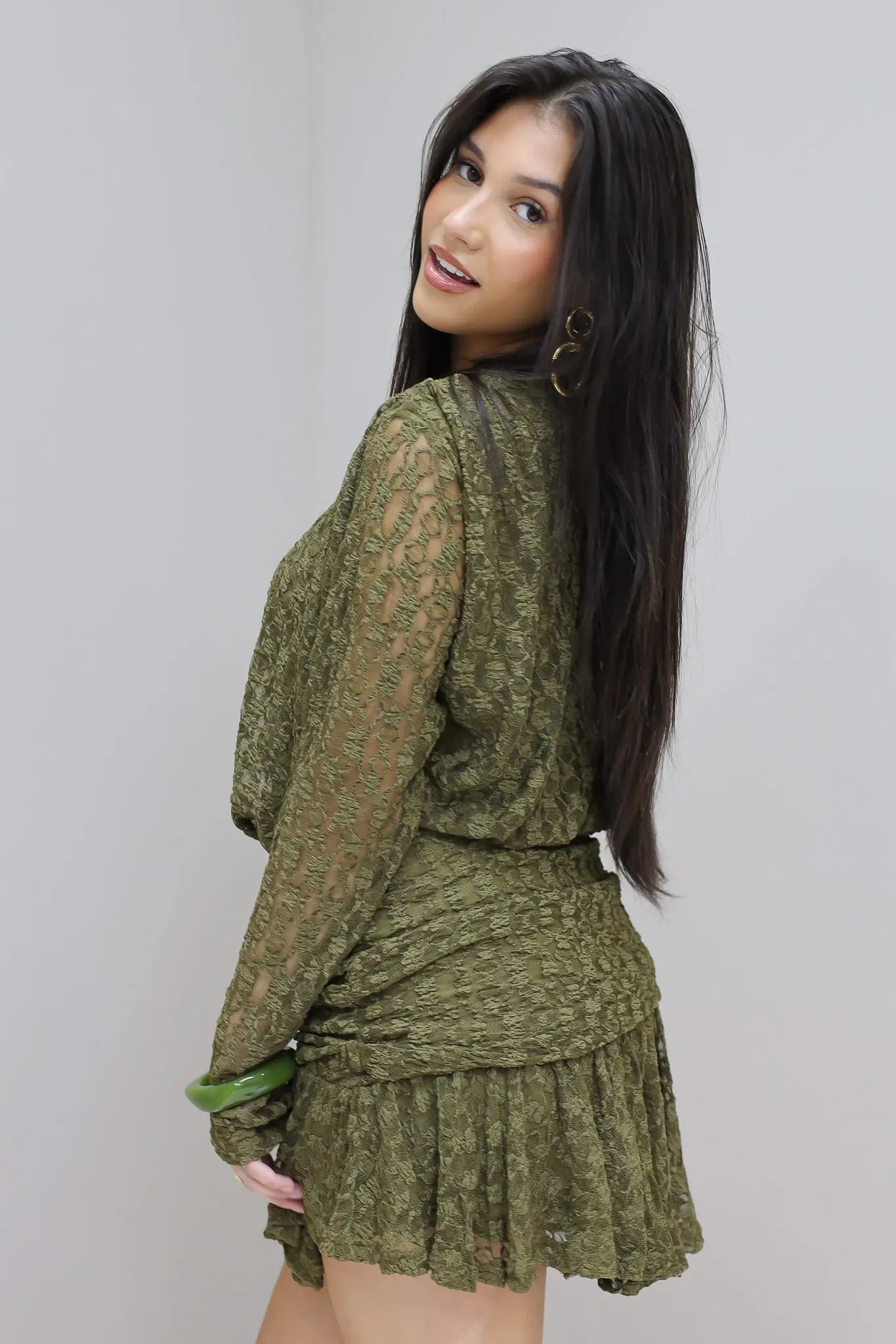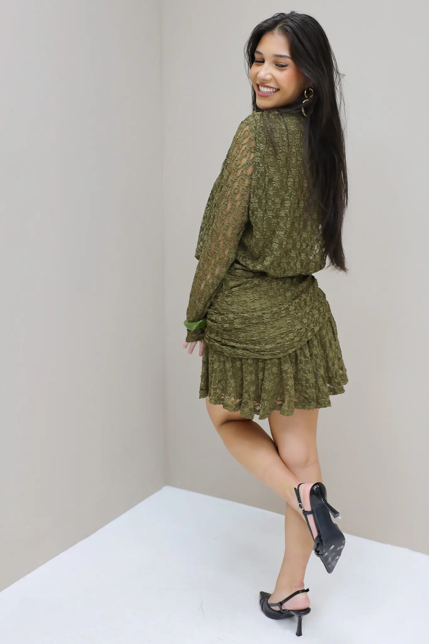 Jurk lange mouwen groen Elastisch Kant
