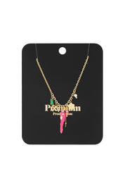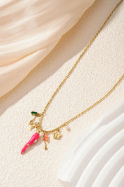 Of je nu houdt van sieraden met een knipoog of een leuk accent zoekt dat net iets extra’s toevoegt – deze gouden ketting met peperhanger is er zo één. Het is geen standaard sieraad. Door de combinatie van goudkleurig staal en kleurrijke details trek je er direct de aandacht mee. Perfect voor wie houdt van kleine statements die je outfit nét iets meer maken.