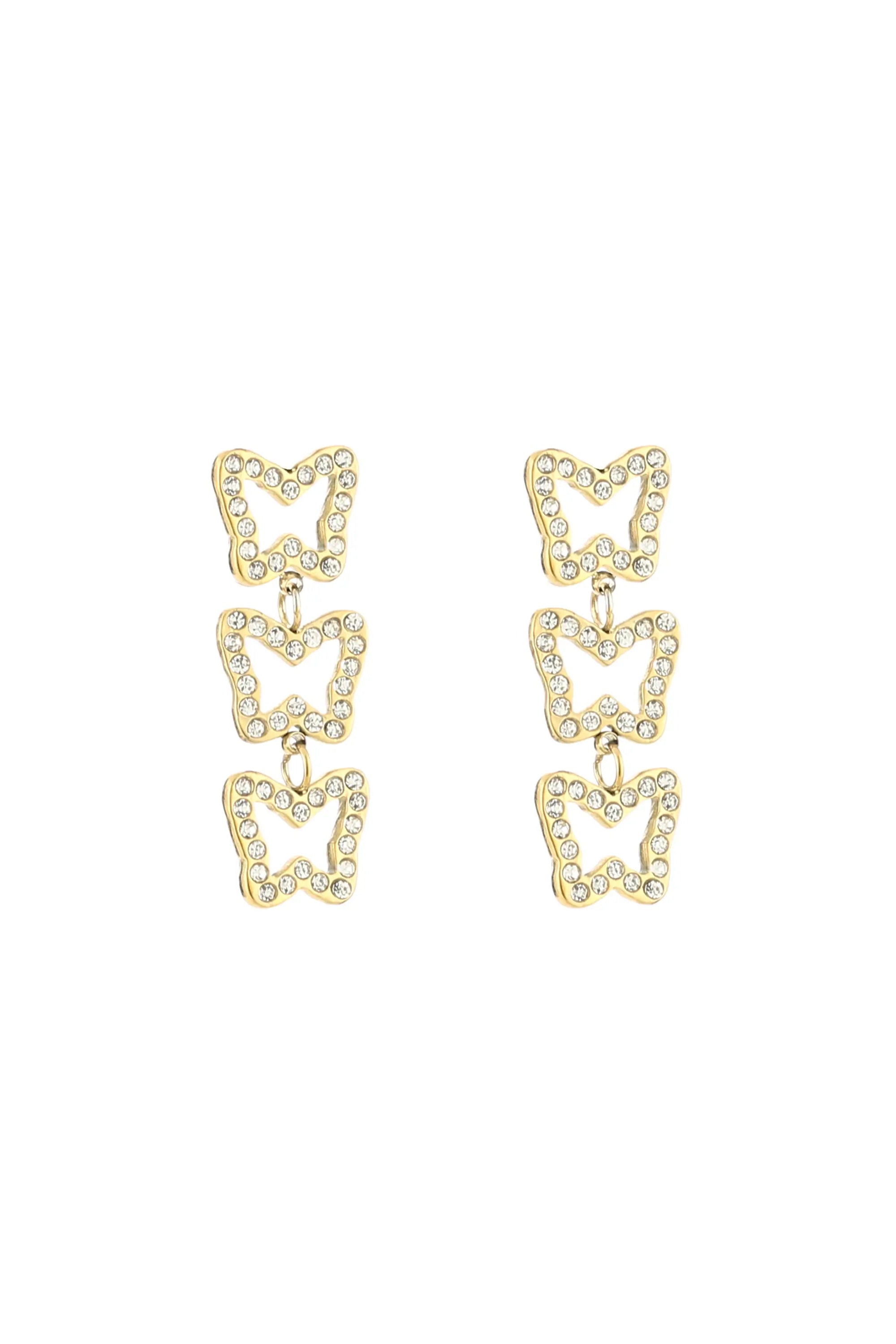 Oorbellen met vlinders en strass steentjes.