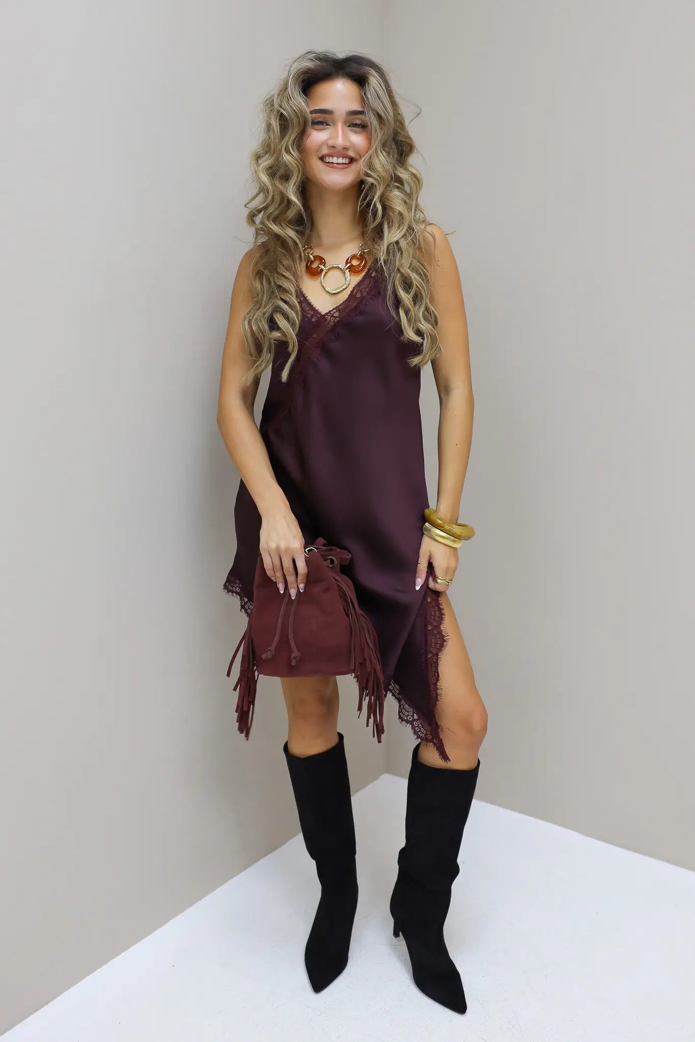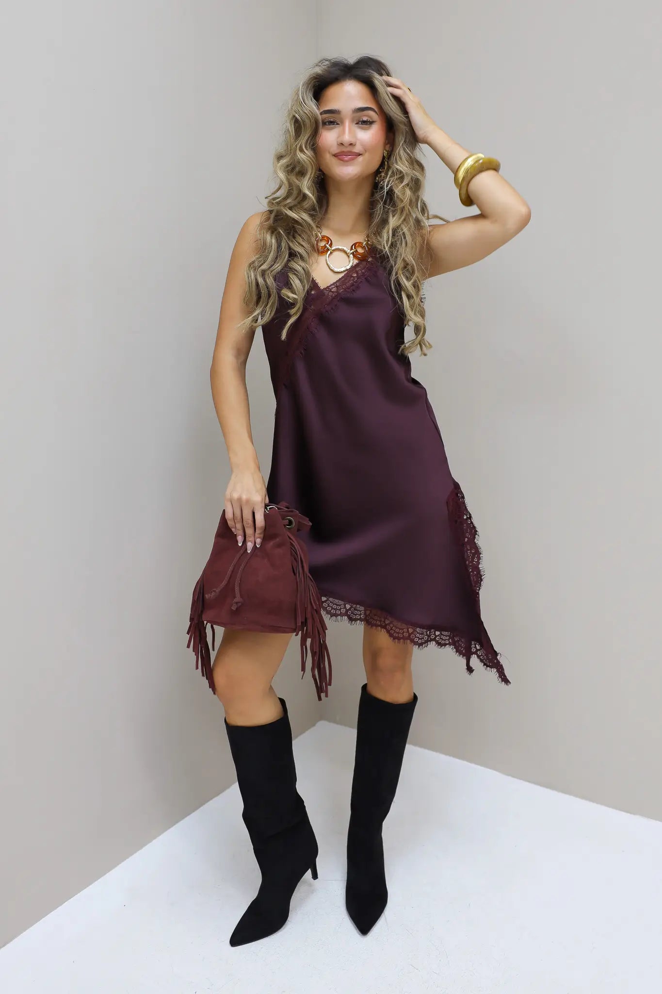 Bordeaux satijnen jurk met kant jouw nieuwe favoriet