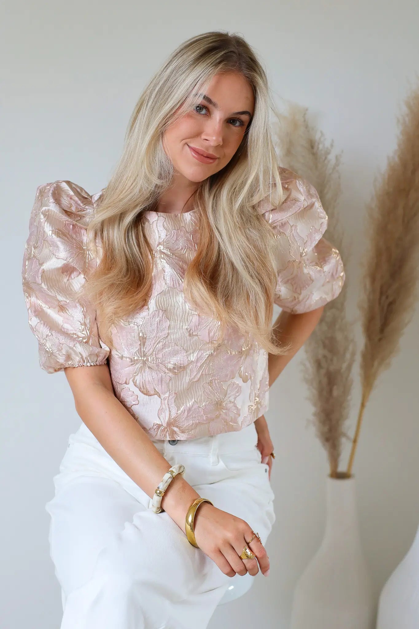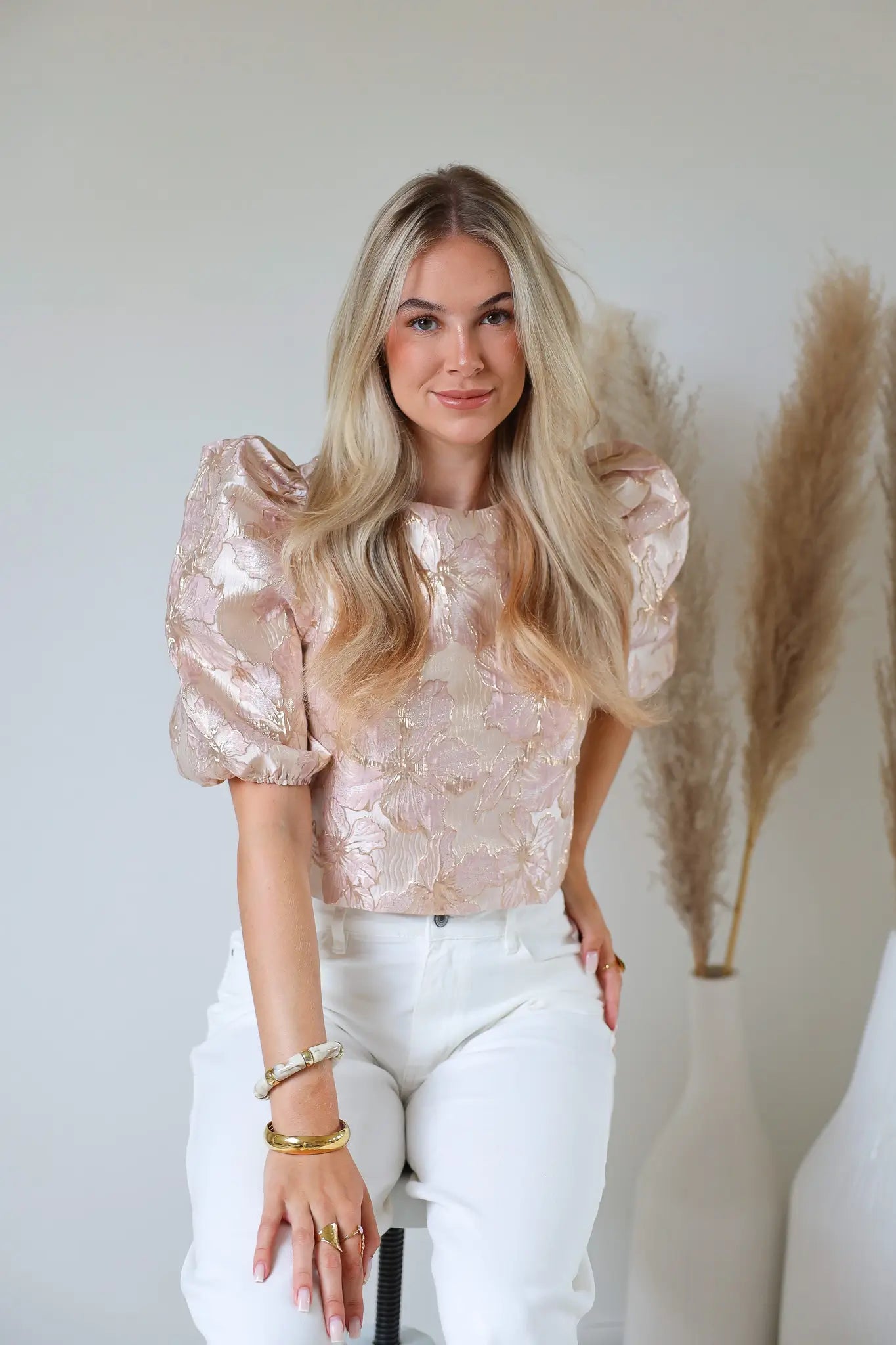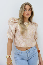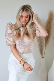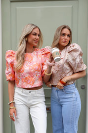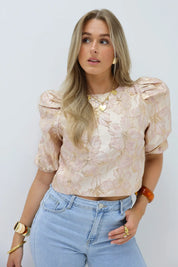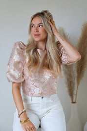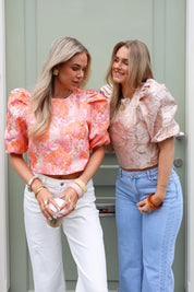 - Product: Structuur Bloemen Top Roze